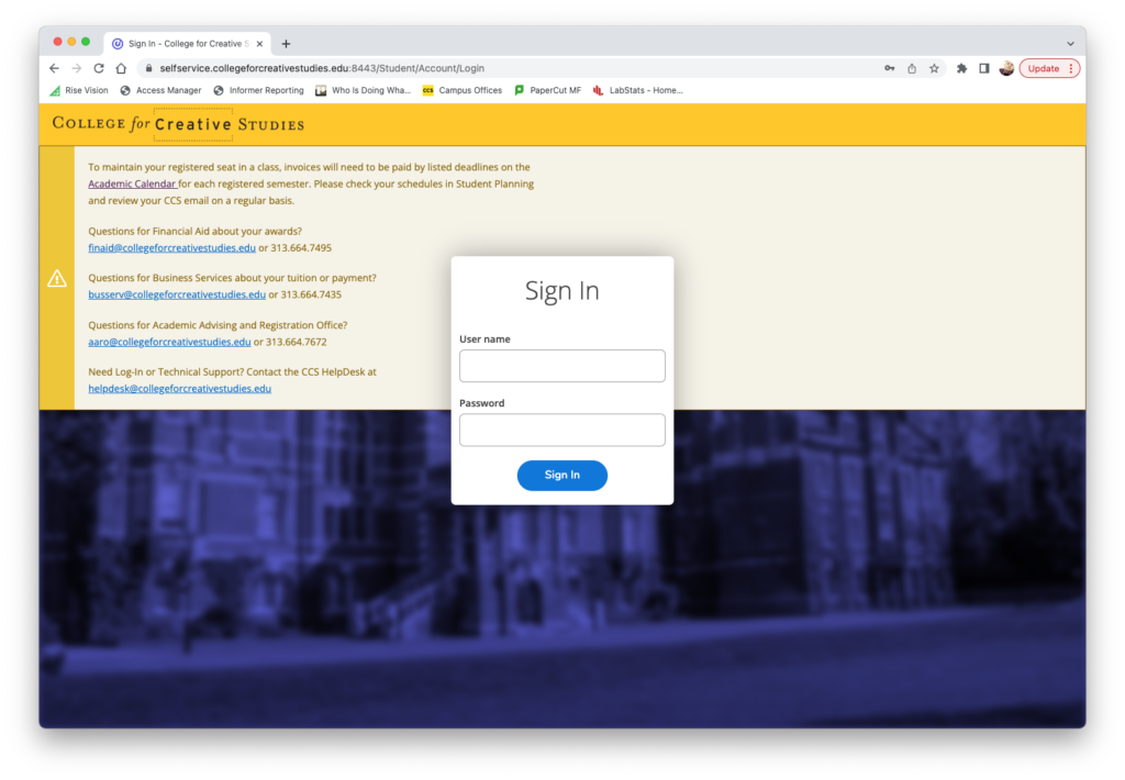 The College for Creative Studies subscribes to the principle of equal opportunity in its employment, admissions, and educational programs and activities and strives to provide an educational environment and workplace free from unlawful harassment or discrimination. The College is committed to an inclusive community that respects and values all its members, including students, faculty, and staff.