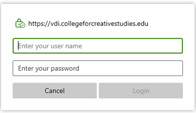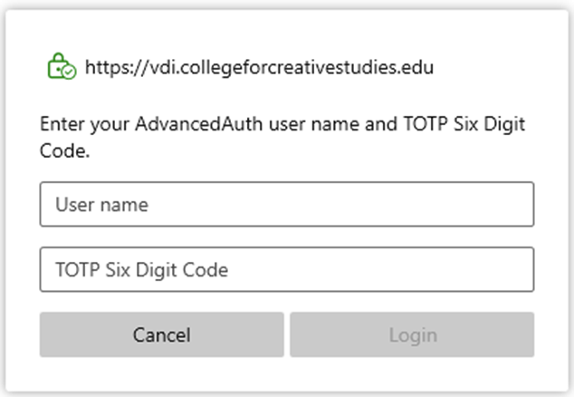 Access to VDI will require multi-factor authentication (MFA) each time you log in. Important: at the present time VDI only supports MFA with a TOTP authenticator app (not texting or email). See https://campus.collegeforcreativestudies.edu/its/multi-factor-sign-in/ for information on setting that up.
