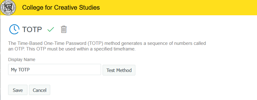 To test that the TOTP works, click back into the TOTP area and click ‘Test Method’
