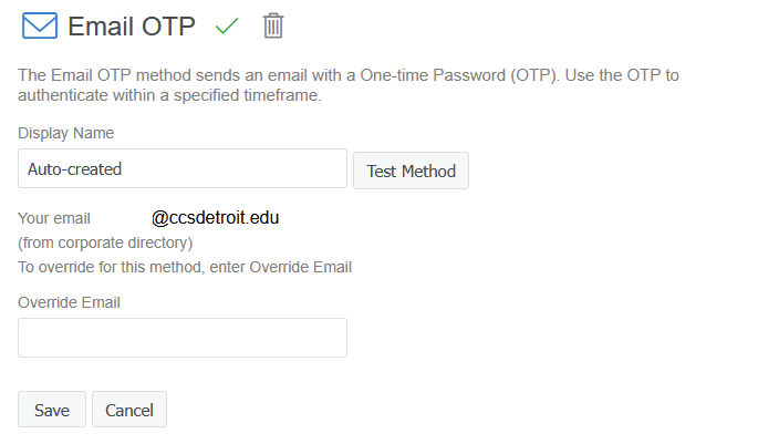 By default, your email address is already populated, but isn’t always the best choice to receive a sign-in code since it requires being logged into the account in the first place, creating somewhat of a catch 22 unless you have access to email via a phone or other device. However, you can customize this to send to a personal email account. To do so, click on the “Auto-created Email OTP” box. Enter your personal email account in the Override Email field: