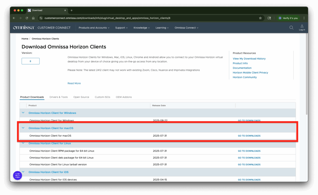 Click on Install Omnissa Horizon Clients.