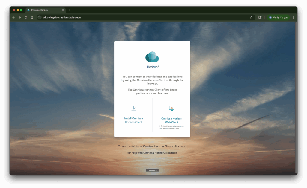 In a web browser go to: https://vdi.collegeforcreativestudies.edu/