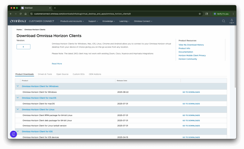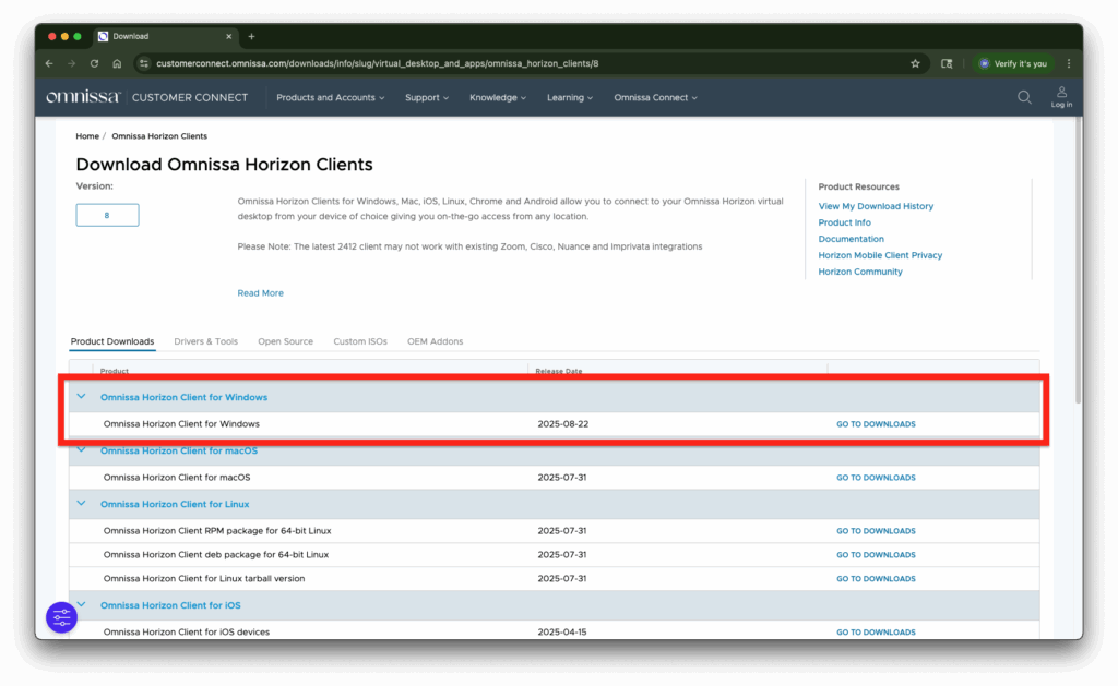 Download the appropriate client for your operating system by clicking on ‘Go To Downloads’.