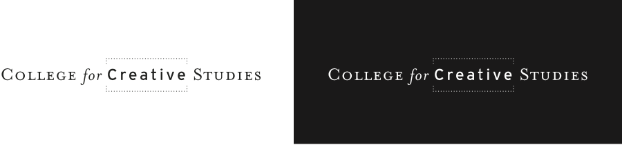 Using the dotted line version of the logo, this variation incorporates specific departments when referencing the College.